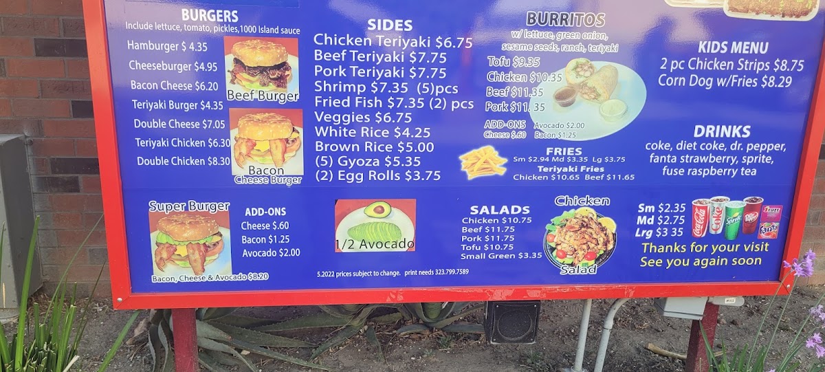 The Teriyaki Burger Premium Grill Menu also features an impressive lineup of fresh salads, giving lighter eaters plenty to smile about. Choices like Chicken, Beef, Pork, and Tofu salads are topped with crisp greens and flavorful dressings, while the Small Greens Salad makes a perfect side to any meal. Speaking of sides, this restaurant doesn’t treat them like an afterthought. The Chicken, Beef, and Pork Teriyaki sides let you enjoy smaller portions of their signature grilled meats, and options like Shrimp (five pieces) or Fried Fish (two pieces) add a crispy, golden edge to any combo. Pair these with a cold Coke, Diet Coke, Dr. Pepper, Strawberry Fanta, or Sprite from their simple but satisfying drink list, and you’ve got the makings of a complete meal that hits all the right notes.